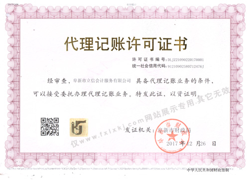阜新市立信會計服務有限公司是經阜新市工商行政管理局登記注冊的財務咨詢服務公司,本公司是阜新市財政局許可的代理記賬單位,阜新立信會計服務有限公司財務咨詢,專業經驗豐富,公司主創人員40年來一直正直、守信、專注、專心從事會計財務工作,具有豐富的財務工作經驗。阜新市立信會計服務有限公司主要從事會計代賬業務、工商注冊代辦業務、財務管理咨詢,……